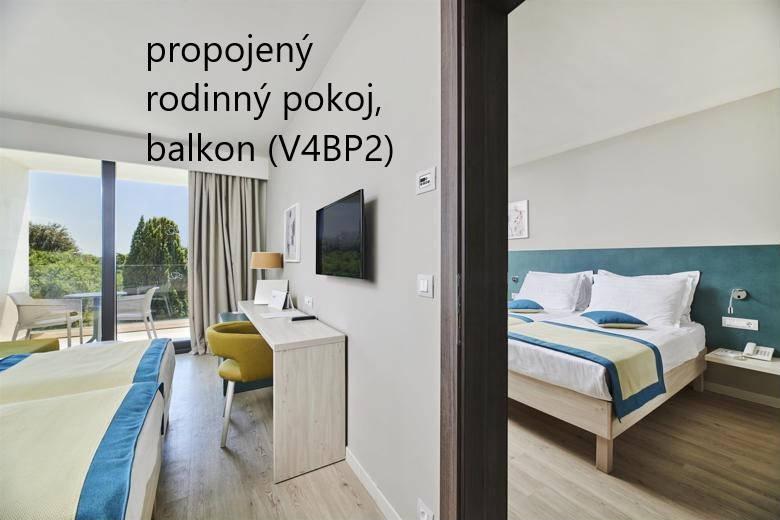 Pokoj Family s balkonem na moře (2+2 BSS FAMILY) - manželská postel nebo 2 oddělená lůžka, 2 rozkládací křesla (přistýlky), vlastní sociální zařízení (koupelna/WC/fén), sat.TV, telefon, klimatizace, minibar, trezor, Wi-Fi připojení, balkon. Výhled mořská strana. Dětská postýlka na vyžádání.