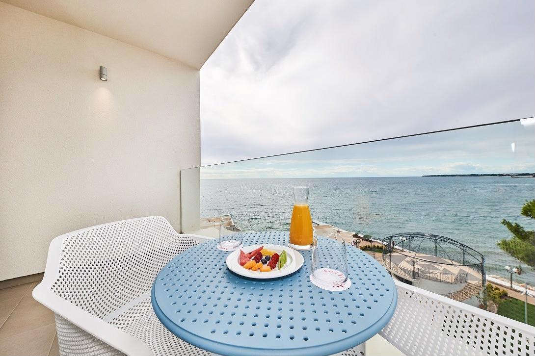Pokoj Premium s výhledem na moře (PREMIUM BLC / SEA VIEW) - King size postel nebo 2 oddělená lůžka, vlastní sociální zařízení (koupelna/WC/fén), sat,TV, telefon, klimatizace, minibar, trezor, Wi-Fi připojení, balkon. Možnost jedné přistýlky. Výhled na moře. Dětská postýlka na vyžádání.